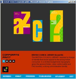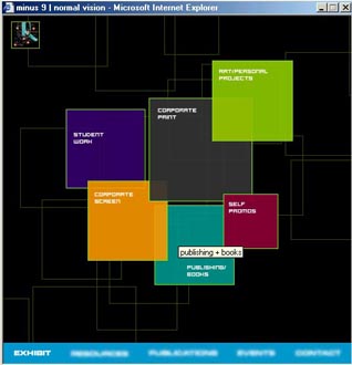The spirit of the old site is much like the present one. It offered a choice. I call my design studio Minus 9 in reference to my eyesight. Central to the concept of the site was the idea of ‘vision’ (referring both to the name of the studio as well as the vision or mission of the studio). Visitors to the site could choose ‘normal vision’ which (like the name indicates) is a more direct way of accessing the work. Or you could choose ‘m9 vision’ which was my way of looking at my work.